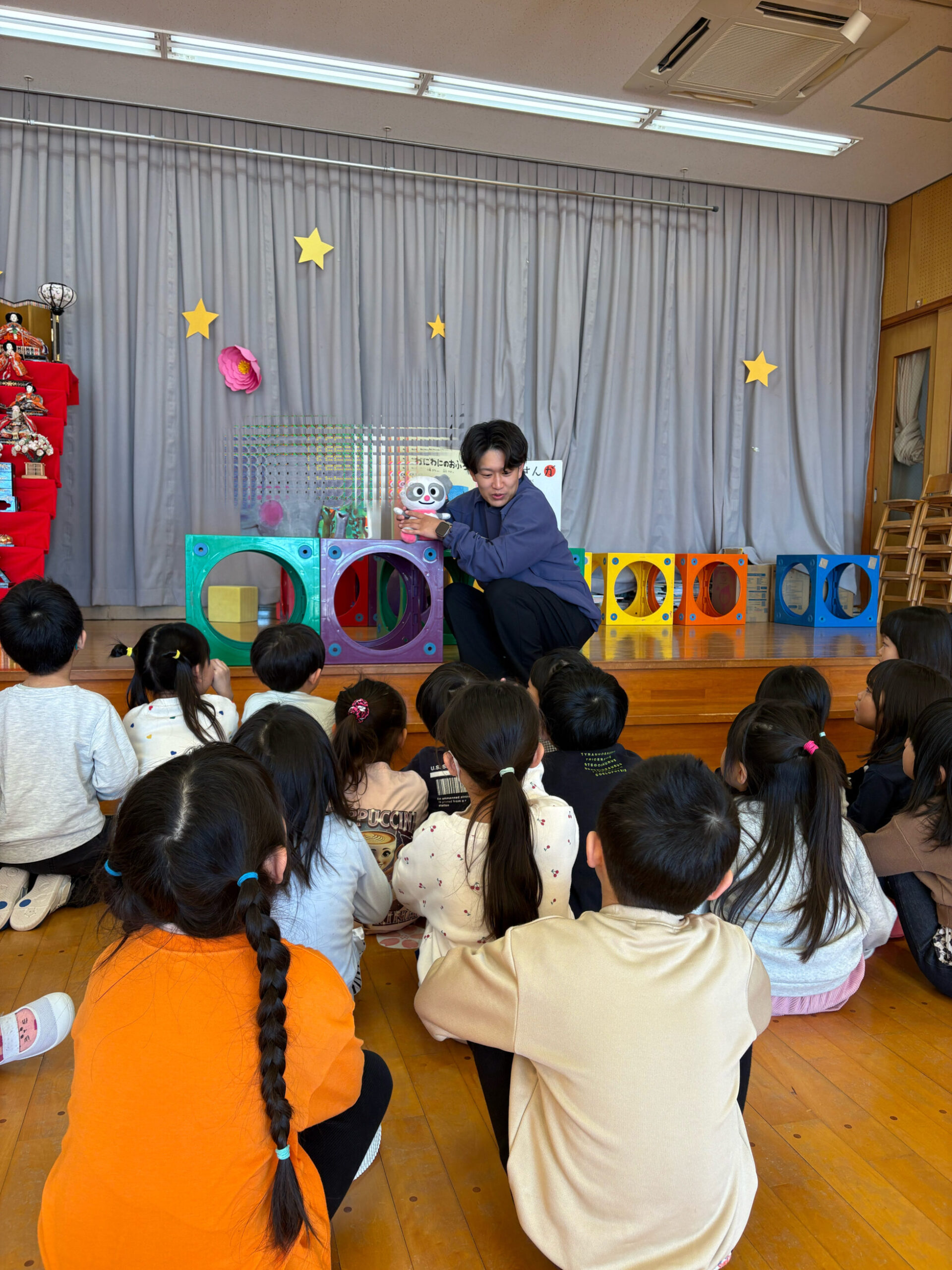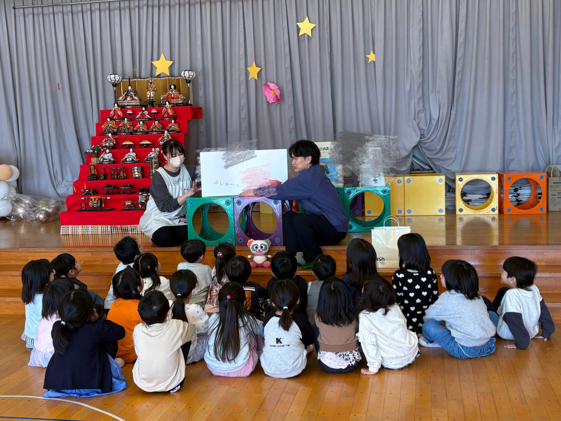 絵本の読み聞かせは、4歳児クラス25人に向けて実施。