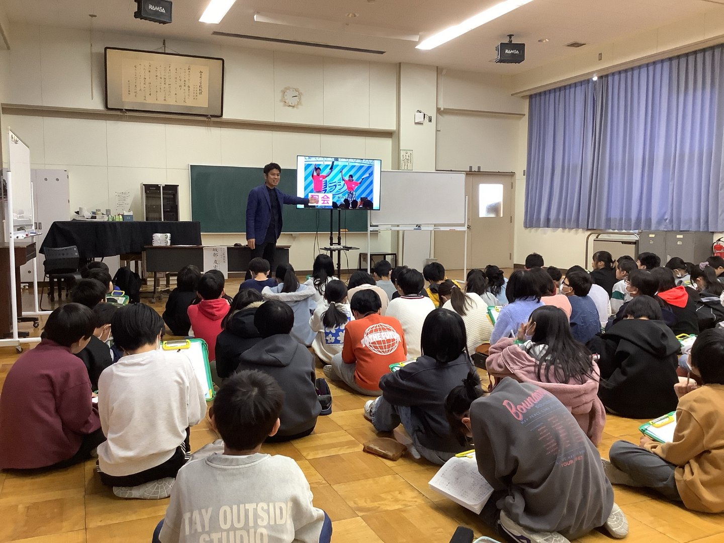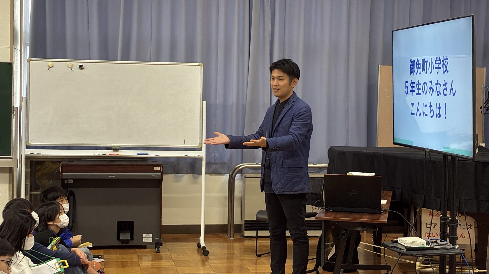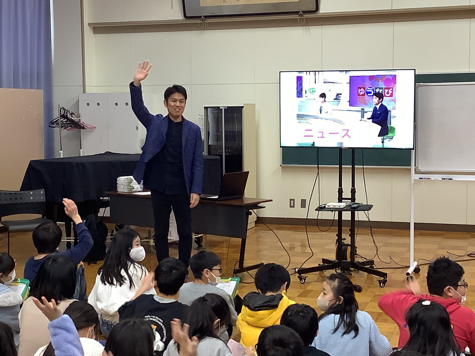 新発田市立御免町小学校に坂部友宏アナウンサーが出前授業に伺いました。