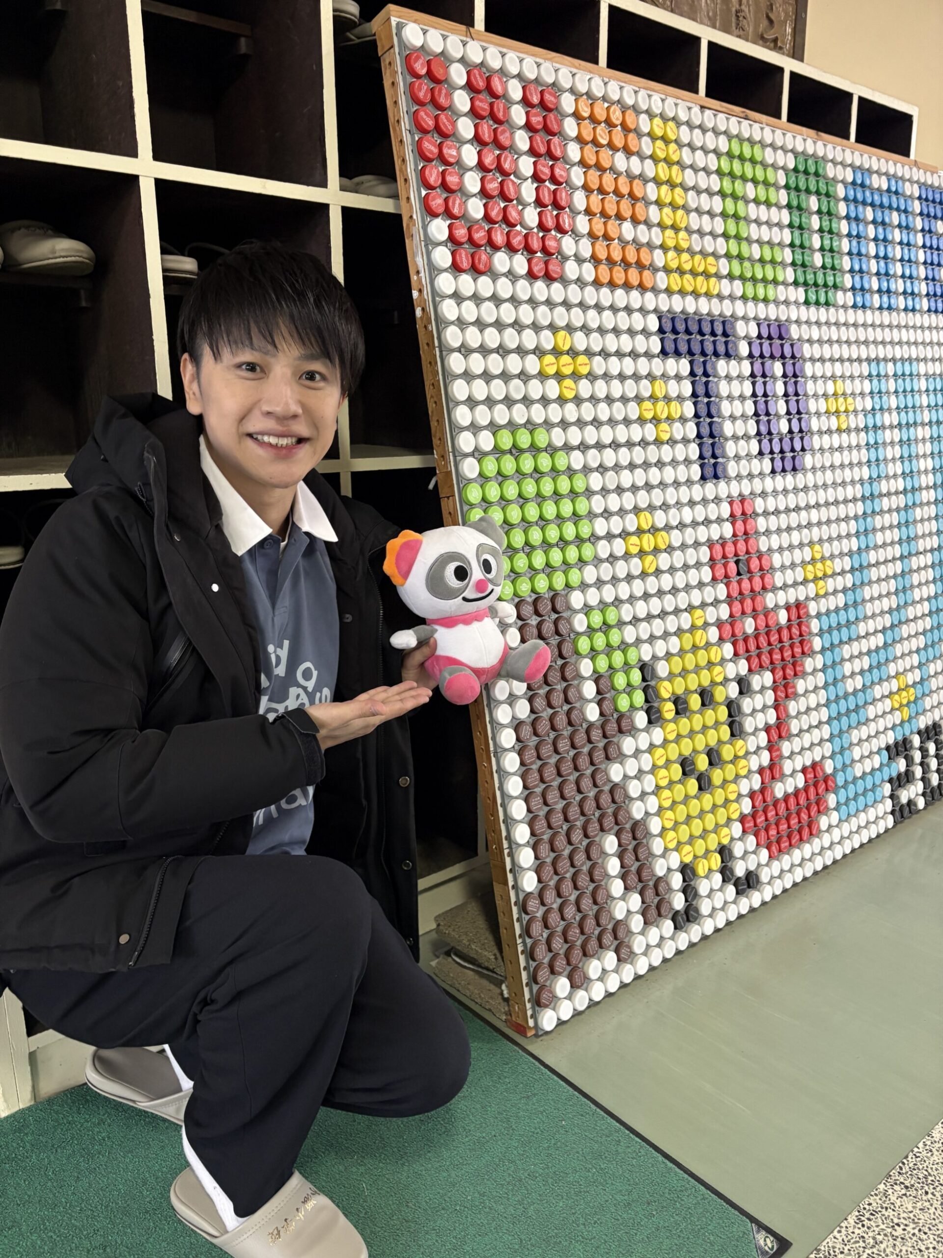 ボトルキャップアートがお迎えしてくれます!