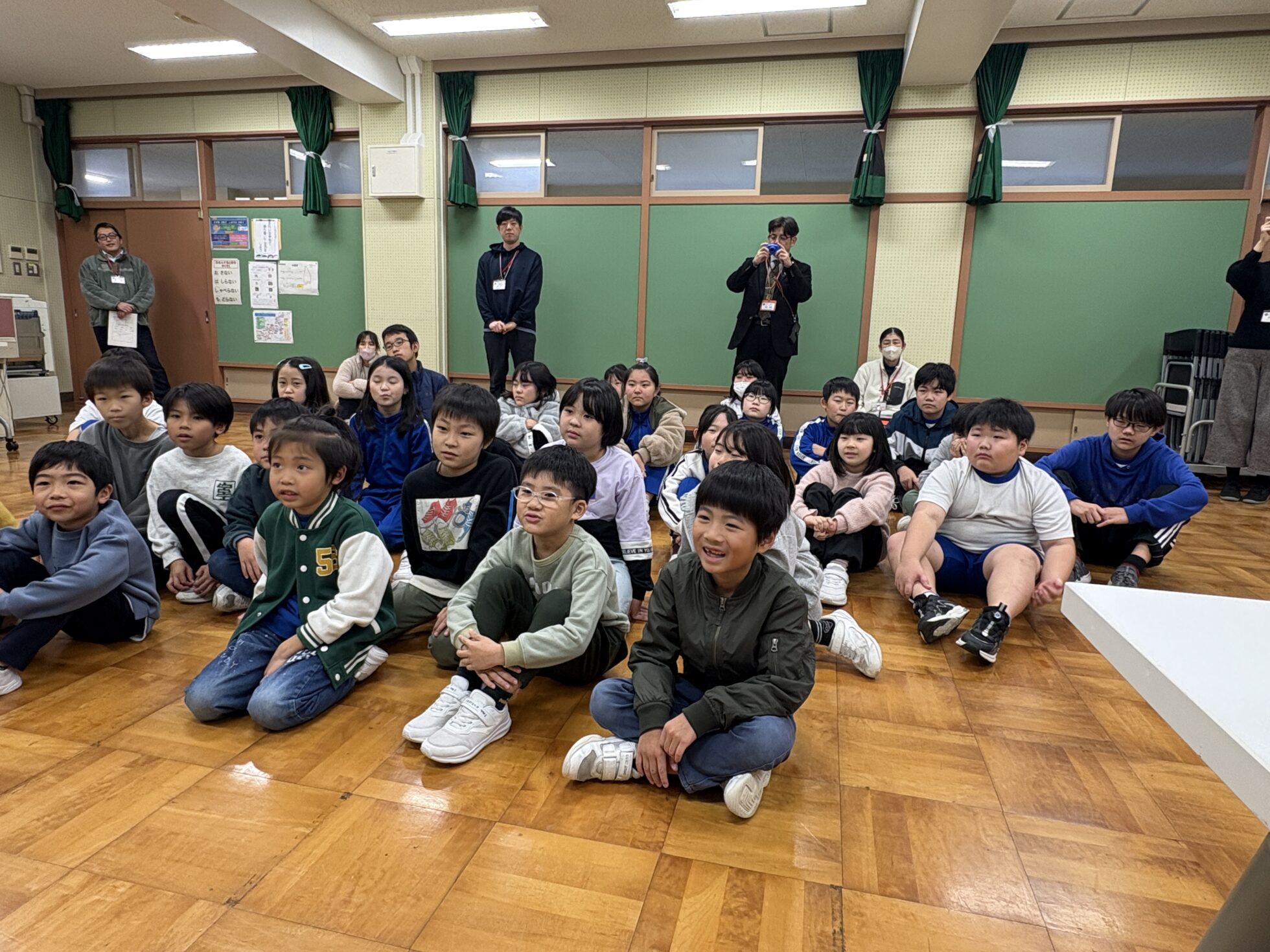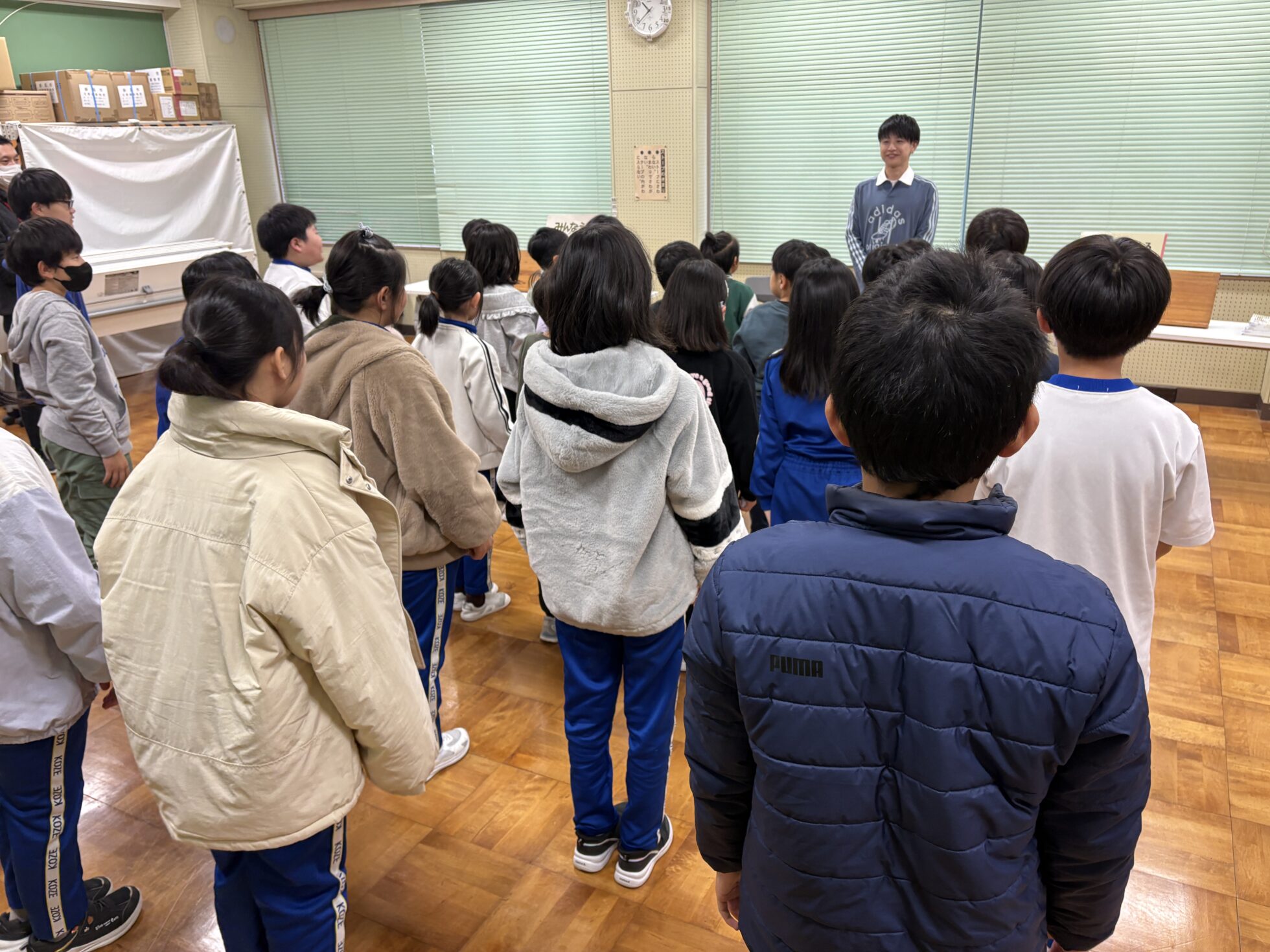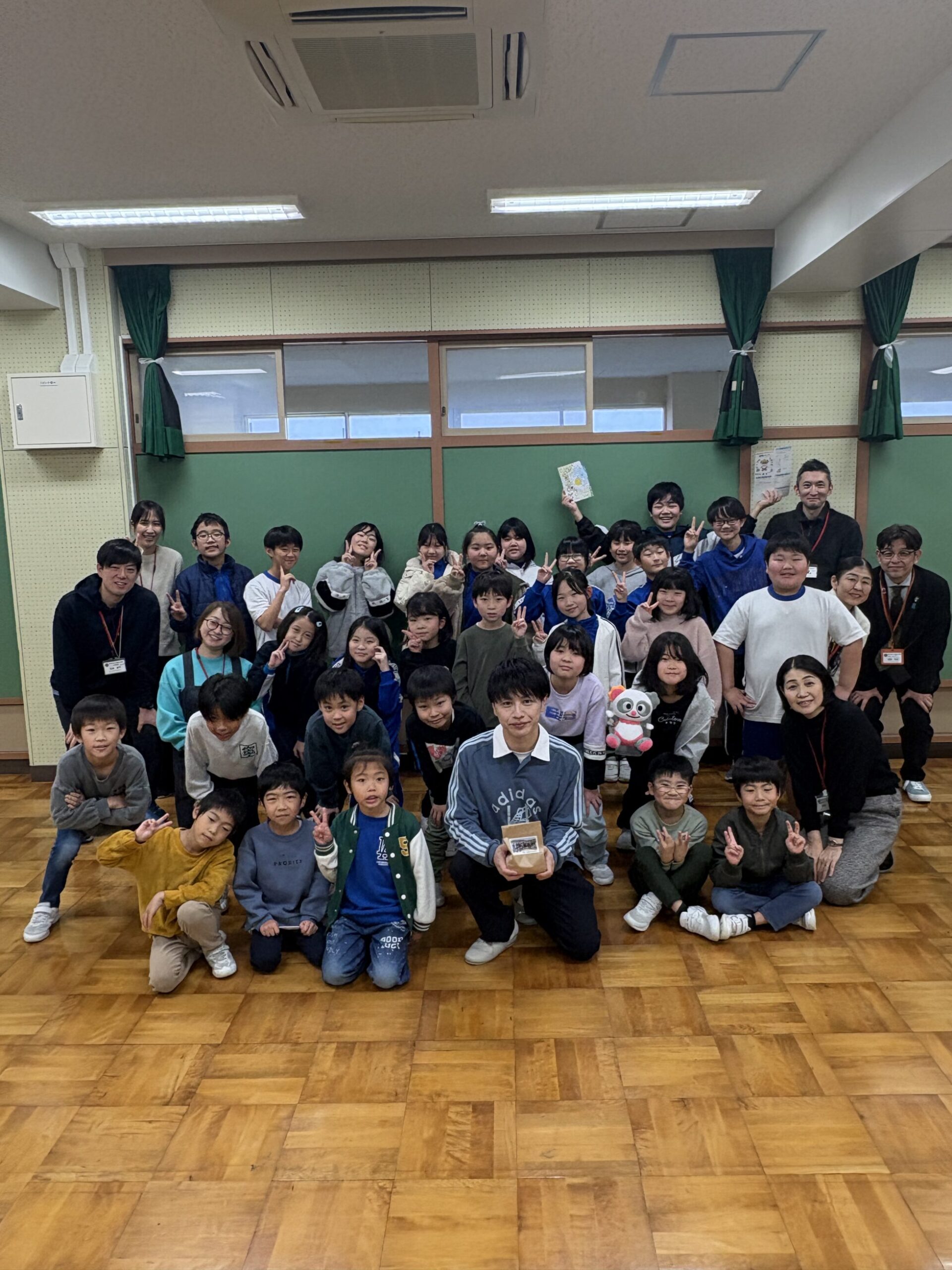 全校生徒31名に向けて、絵本読み聞かせの他、麦島アナが毎日やっている発声練習や、食リポのコツをお伝えしました。