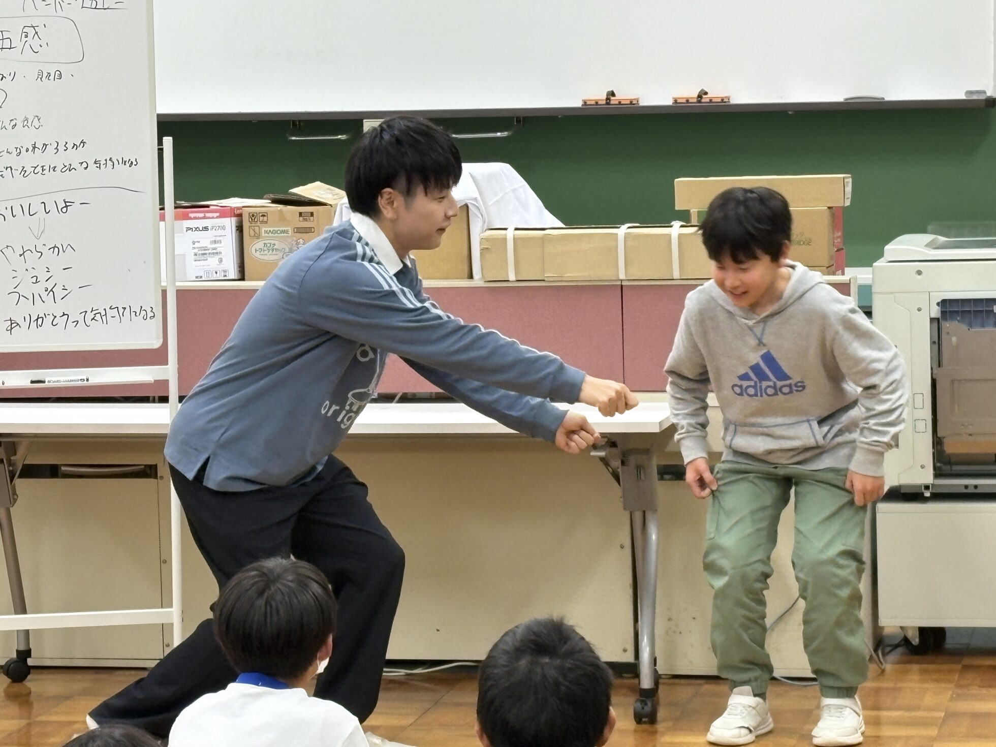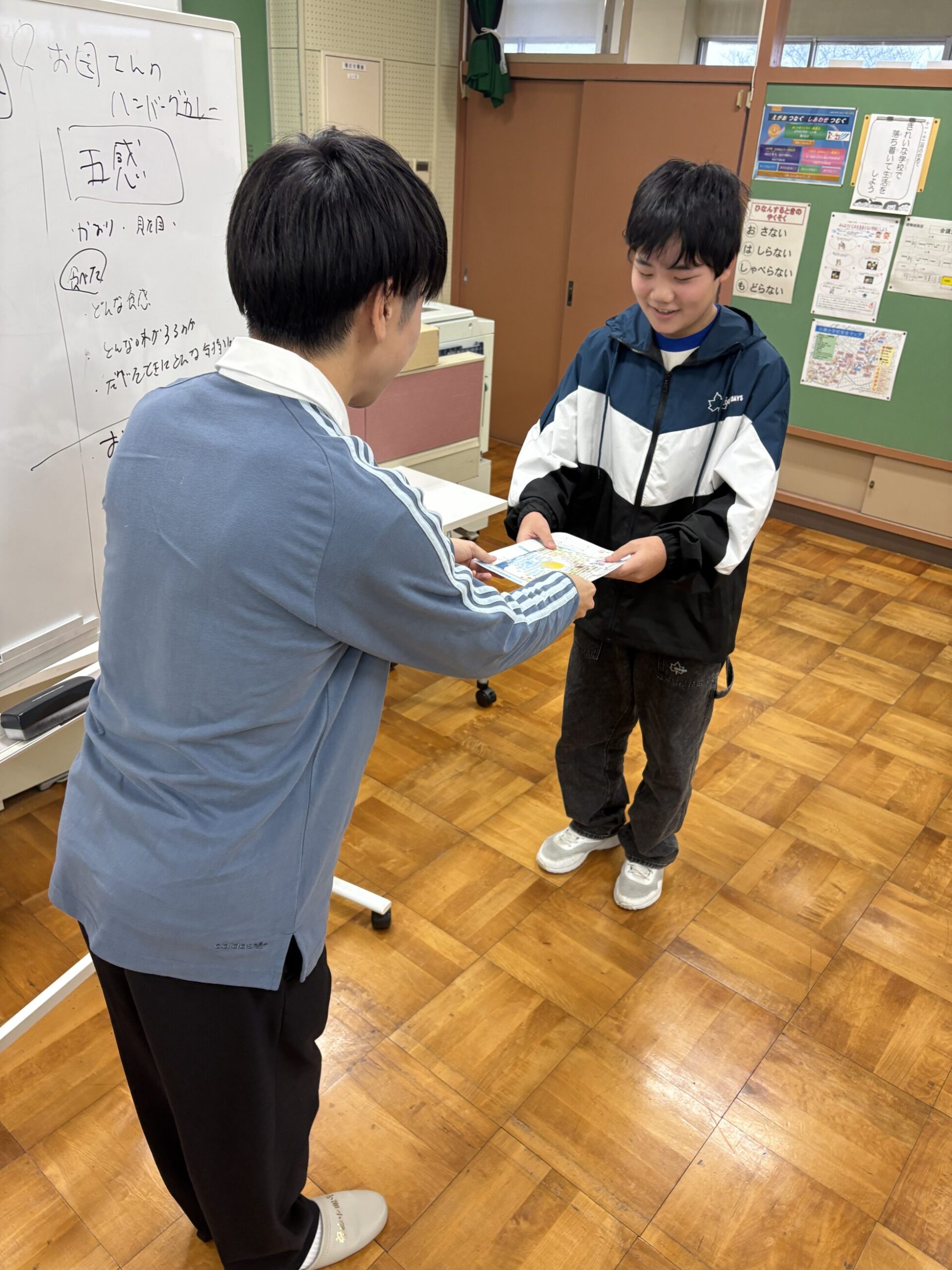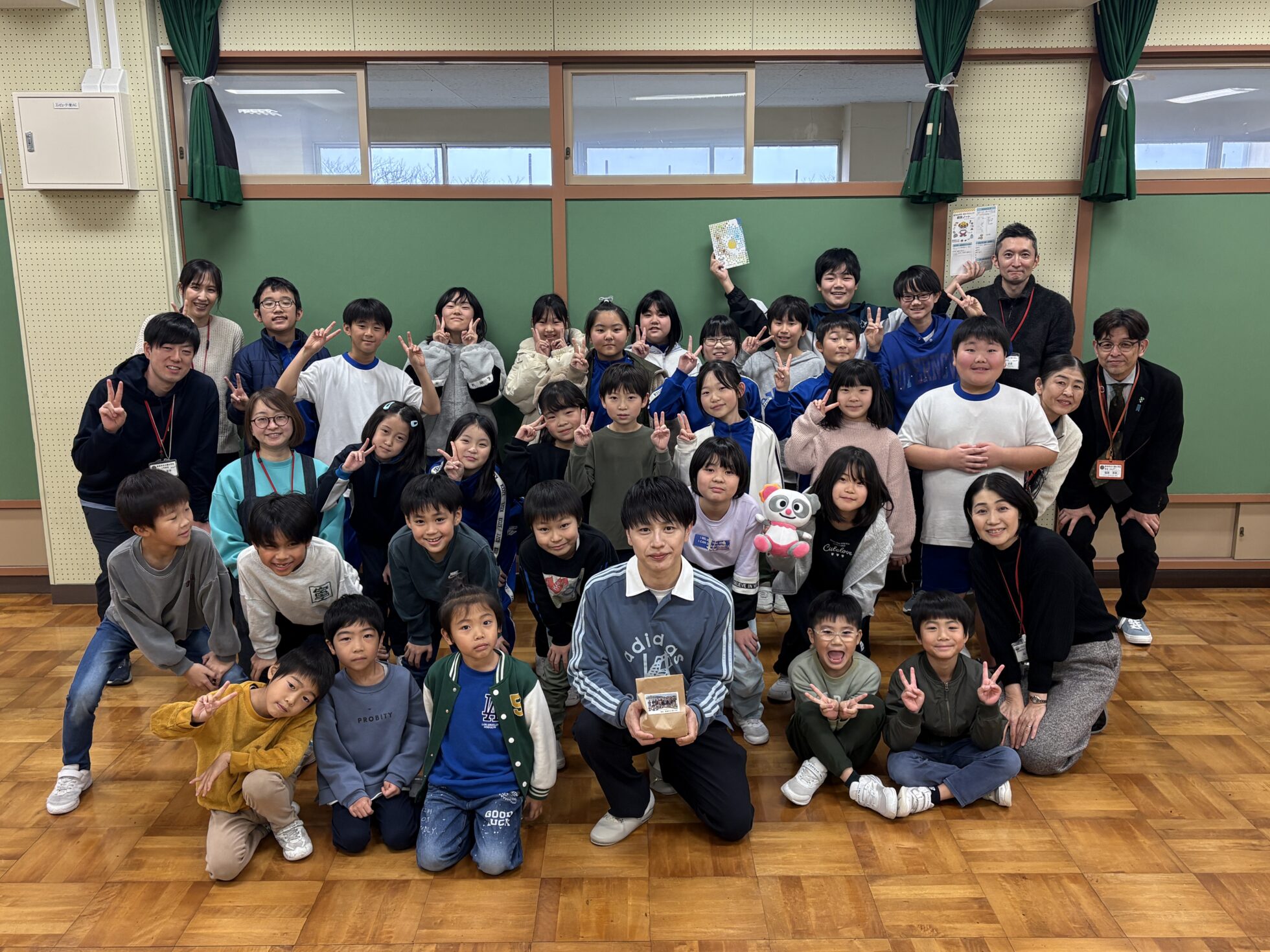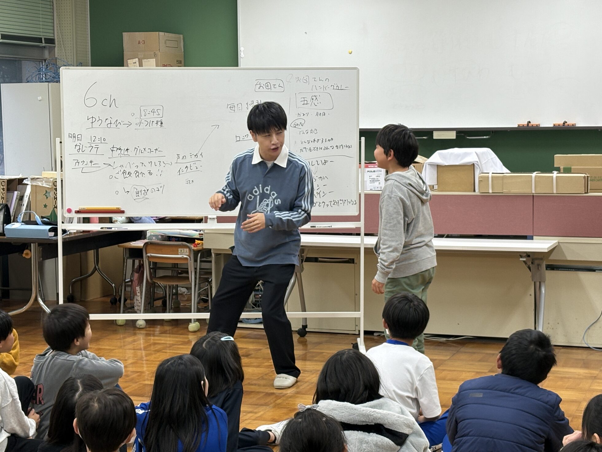 全校生徒31名に向けて、絵本読み聞かせの他、麦島アナが毎日やっている発声練習や、食リポのコツをお伝えしました。