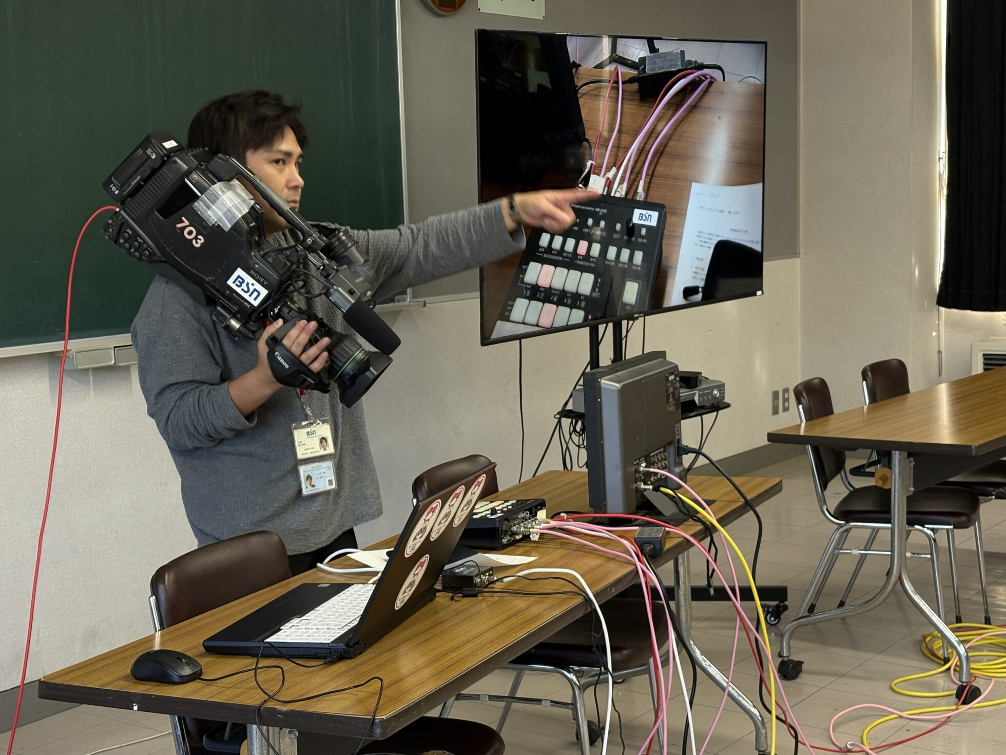 事前に頂いた質問事項を交えながらまずはBSN新潟放送で働く人たちのお仕事、そしてカメラマンと言われる制作技術部のお仕事を紹介します。