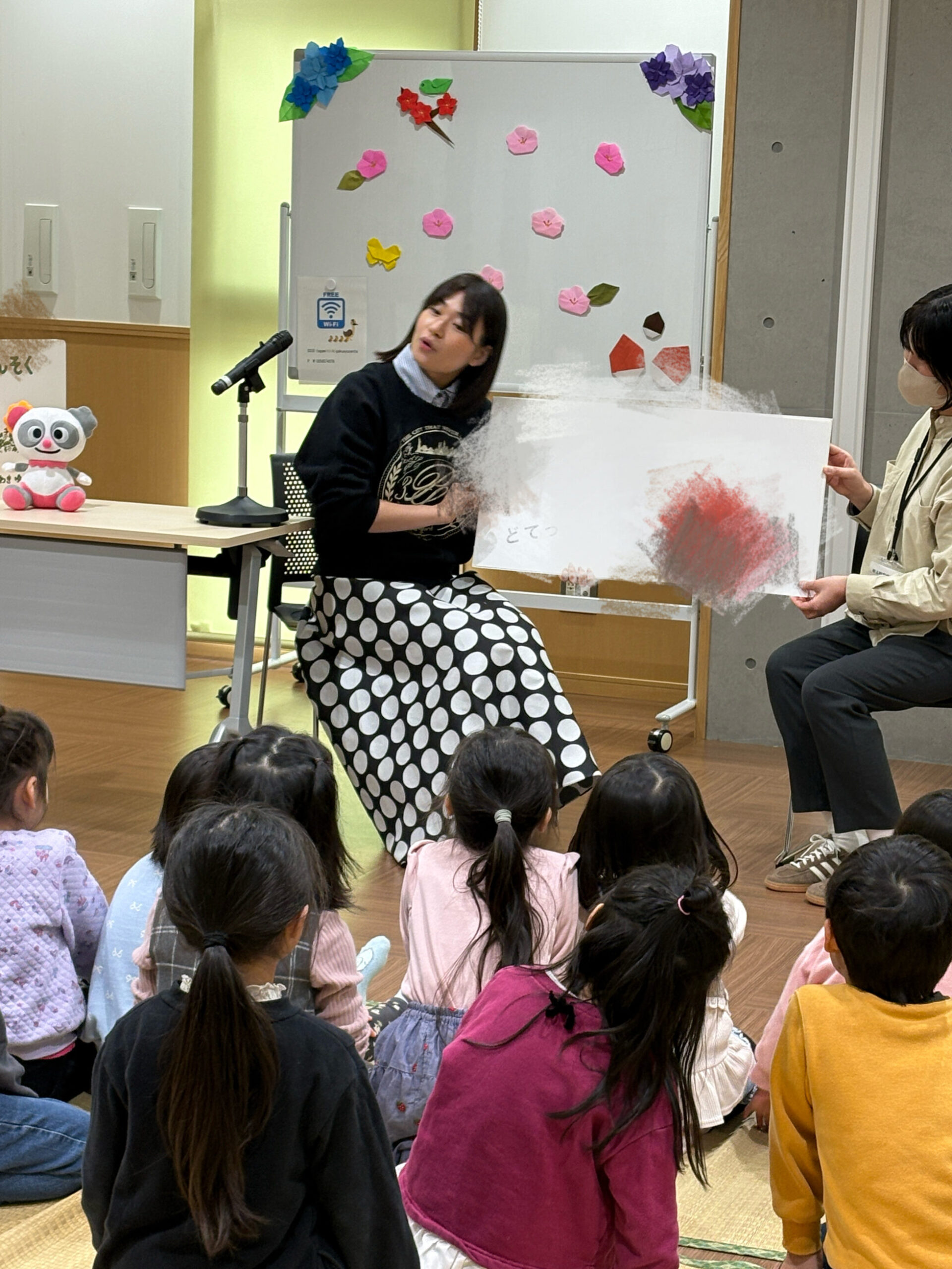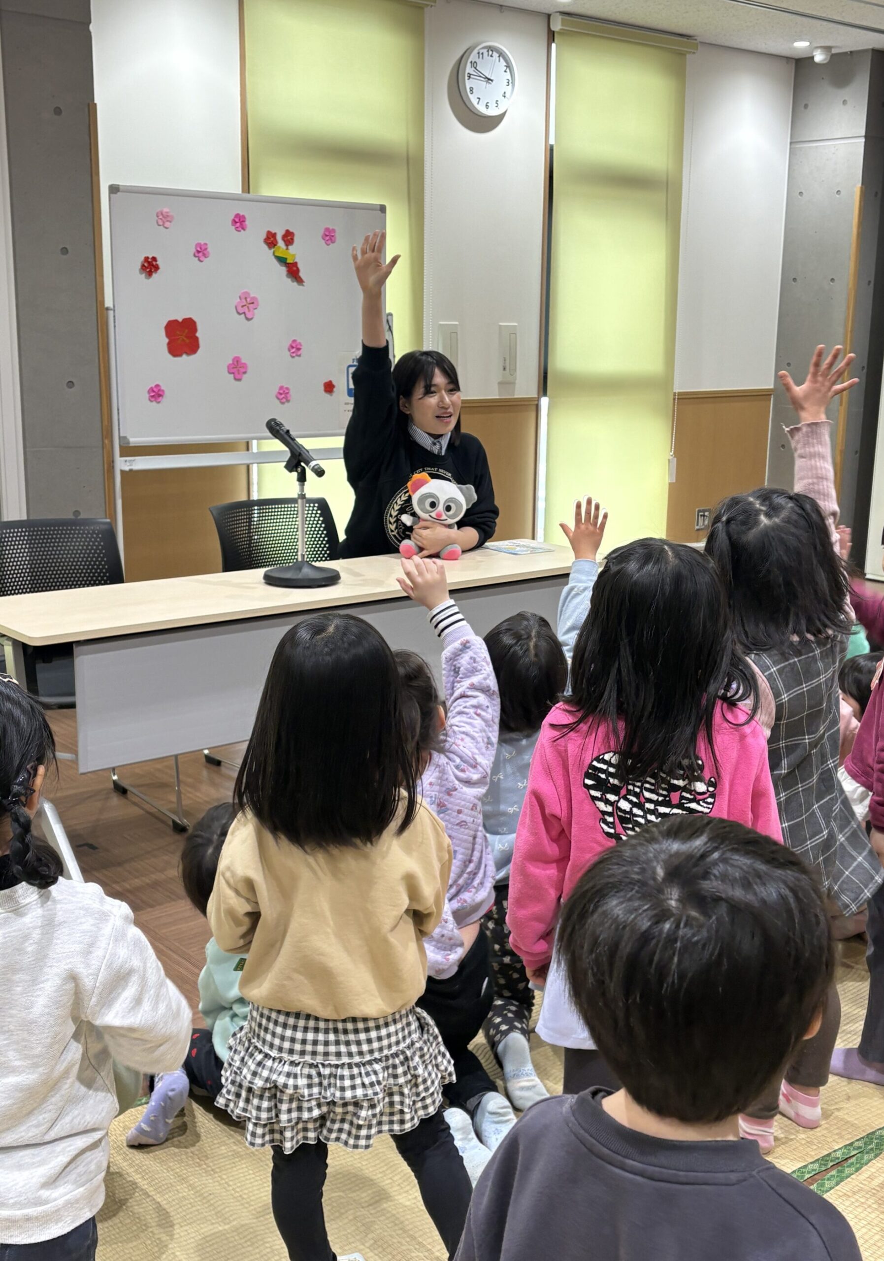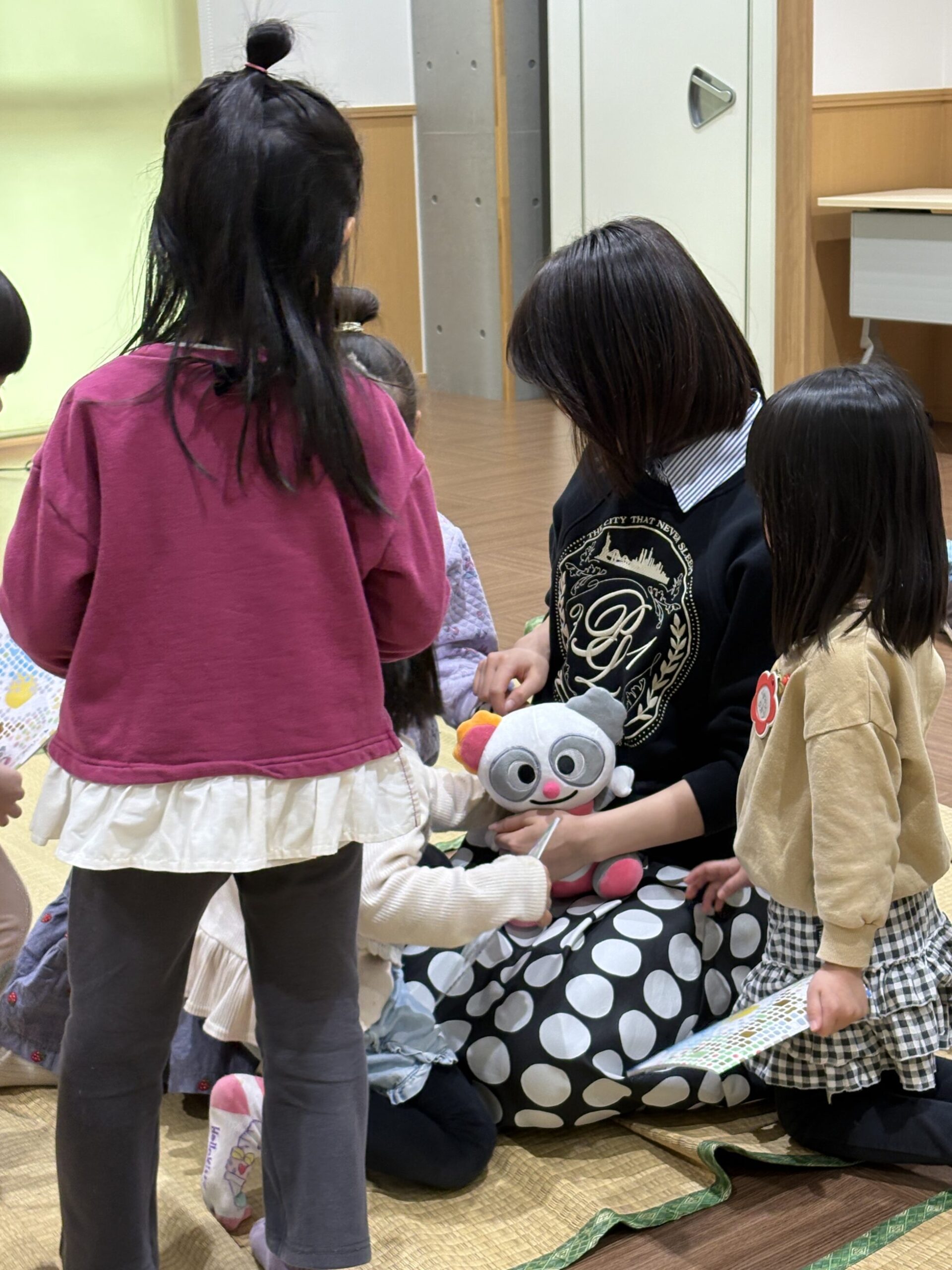 読み聞かせが始まる前から、三浦萌に興味津々なキッズ!