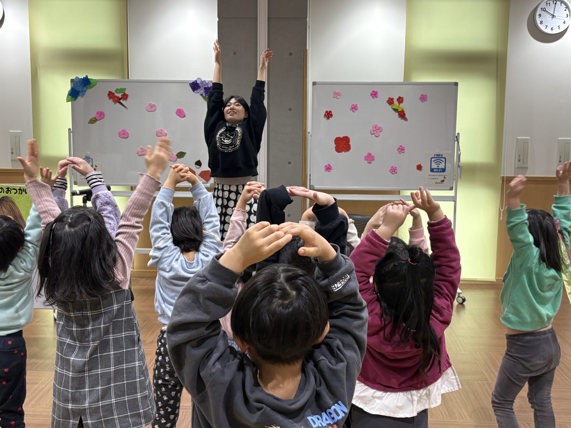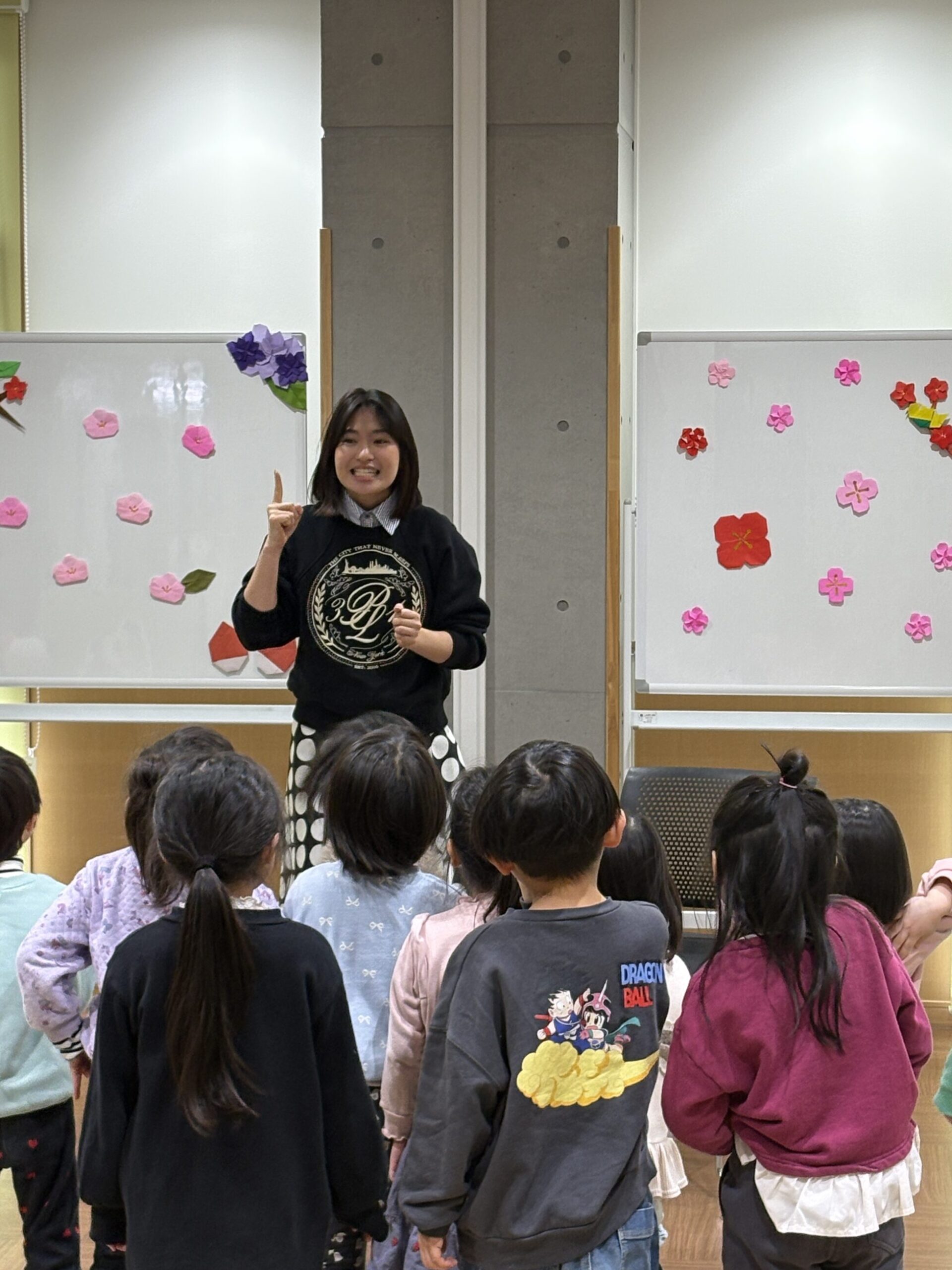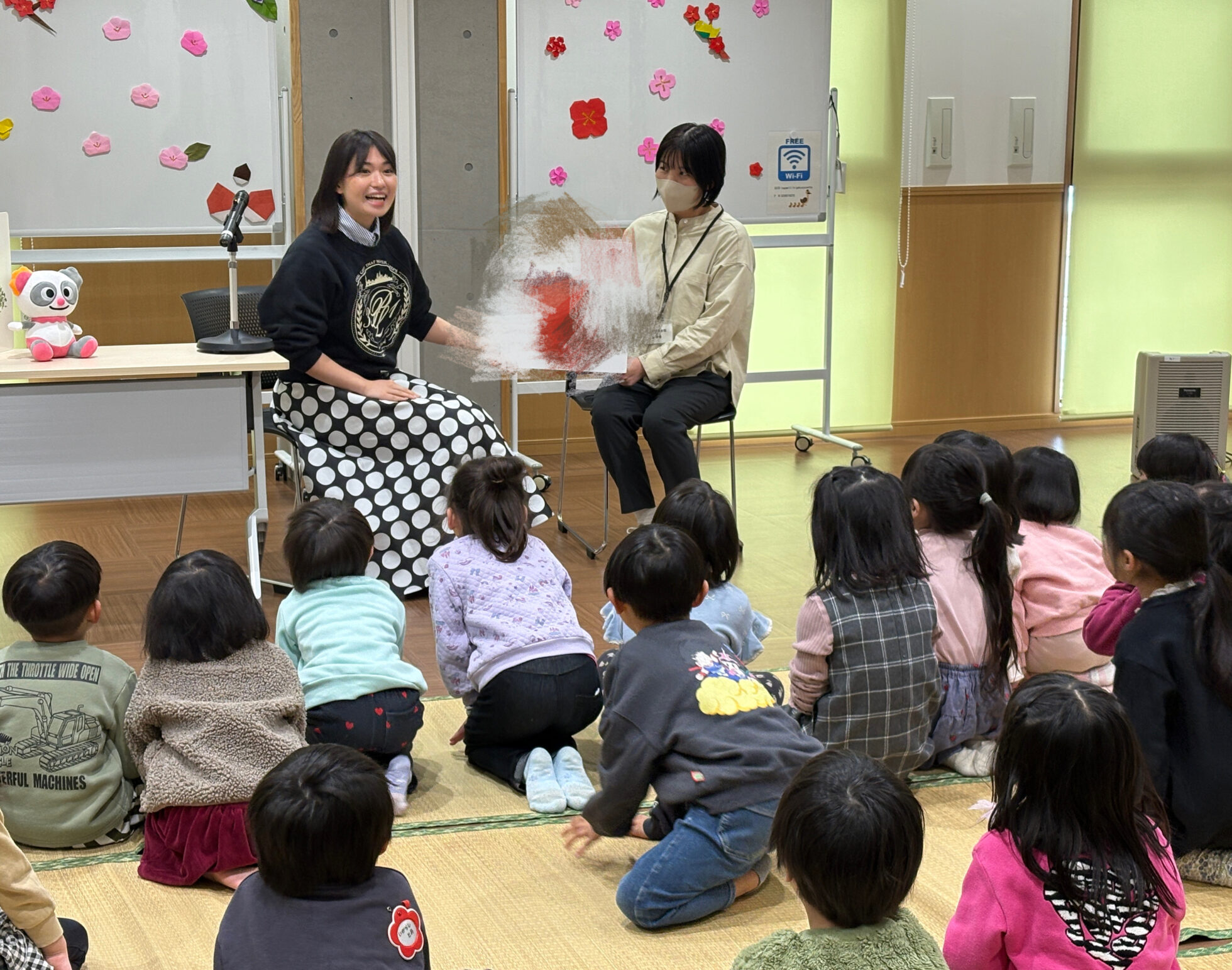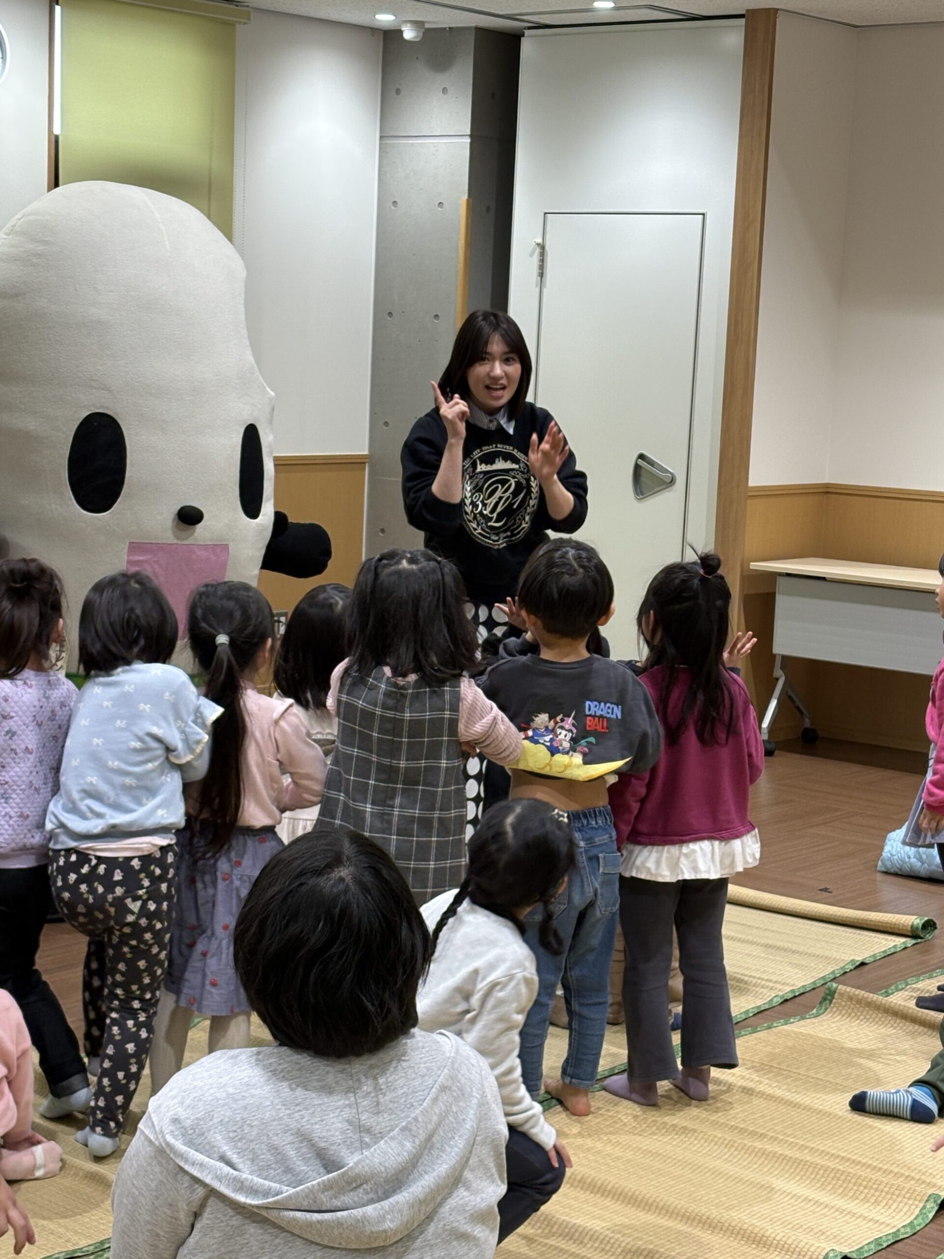 読み聞かせが始まる前から、三浦萌に興味津々なキッズ!