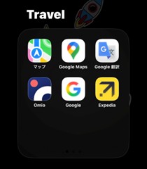 目的地までのルート検索に「マップ」「Google Maps」、会話や看板の翻訳に「Google翻訳」、電車やバスの予約に「Omio」、現地検索に「Google」、飛行機と宿の予約・確認に「Expedia」。