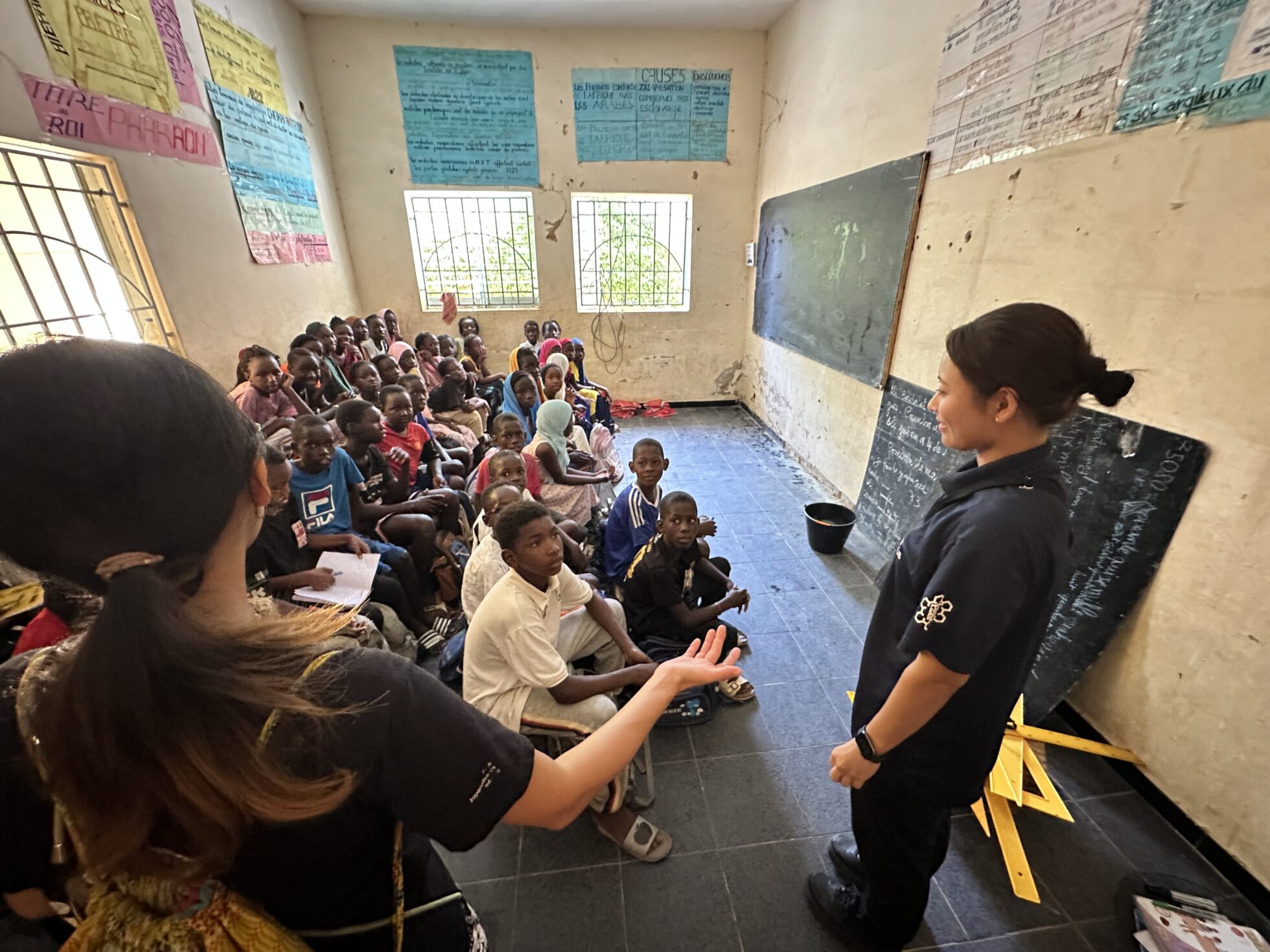 説明を受けるセネガルの子どもたち