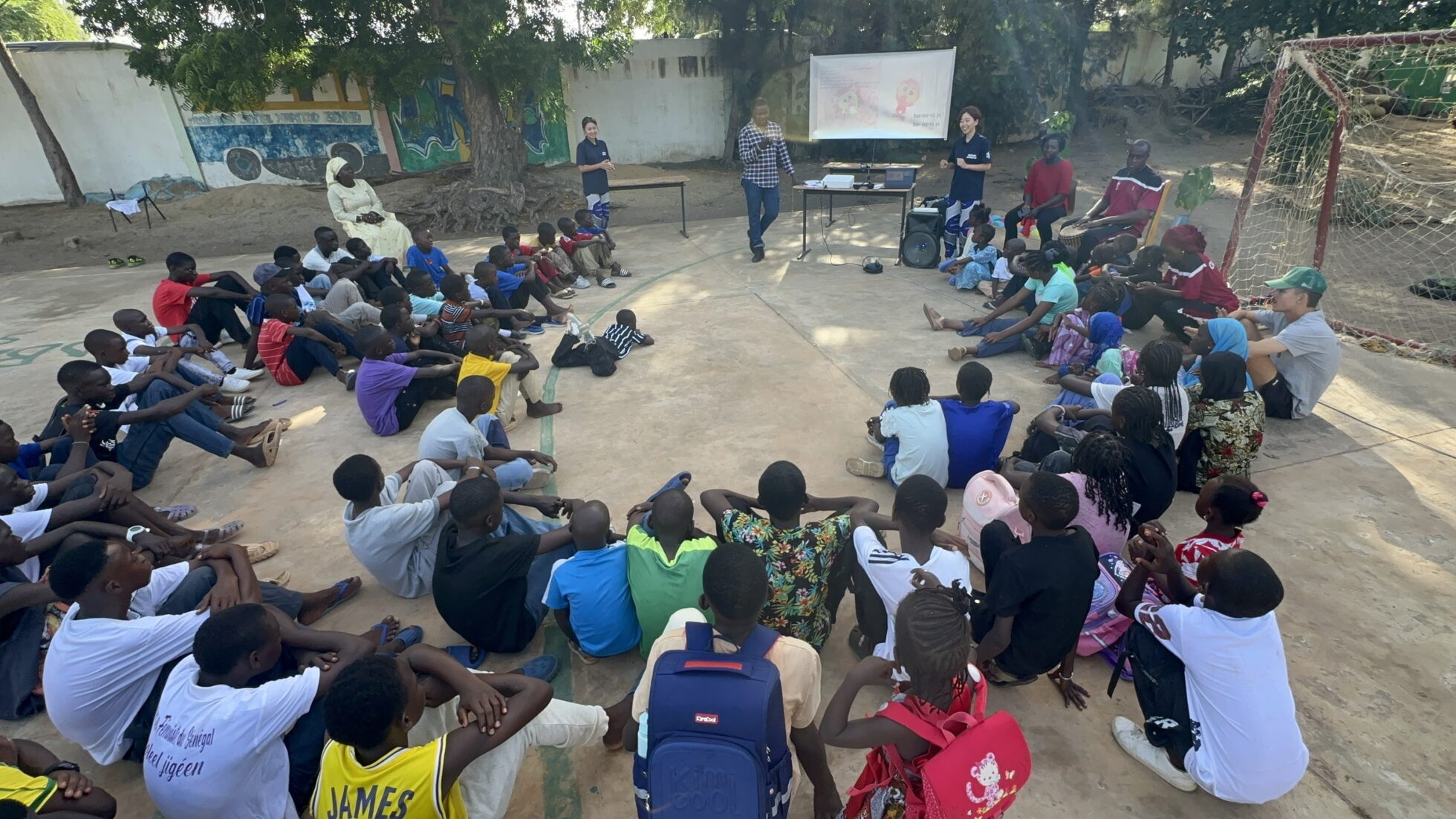 また、日本とのオンライン交流会も実施しました。時差9時間を越え、ジェスチャーゲームやクイズを通して交流が生まれました。日本とセネガルの距離を考えれば仕方ないのかもしれませんが、音声の遅延などの課題はあったものの、子どもたちは画面越しに手を振り、笑顔を交わすことができました。国境を越えた体験は、子どもたちの記憶に強く残る学びになったといえます。