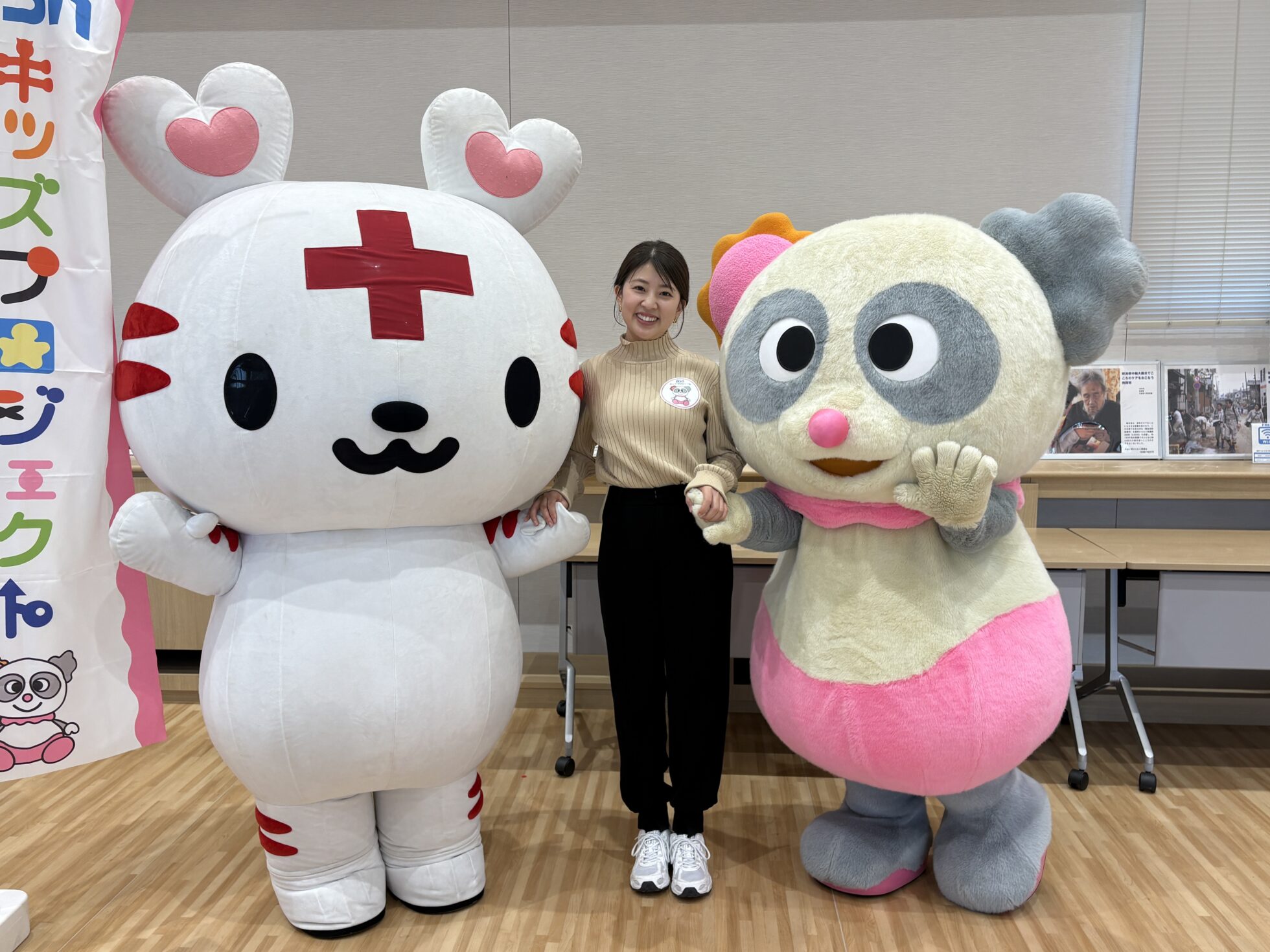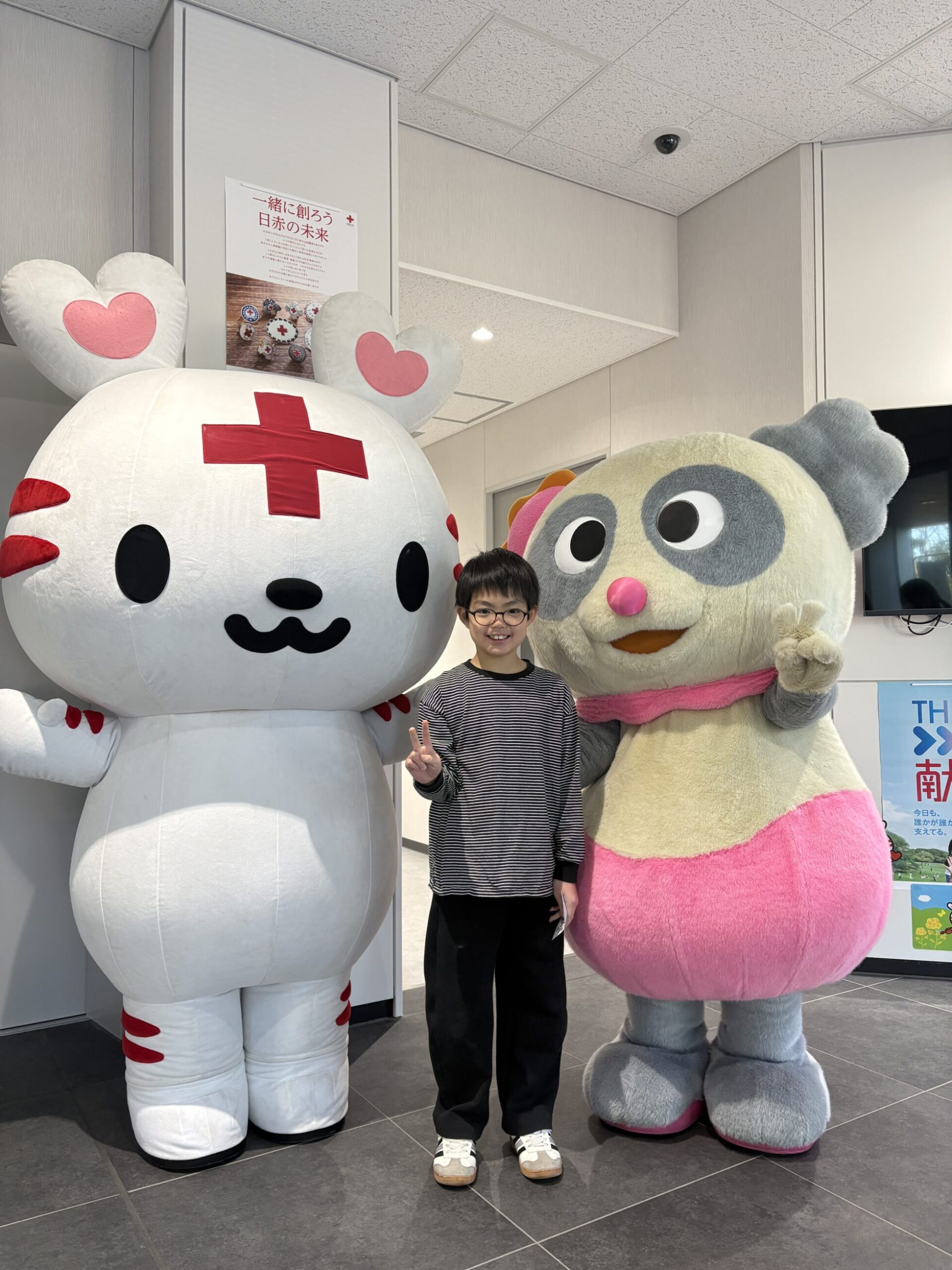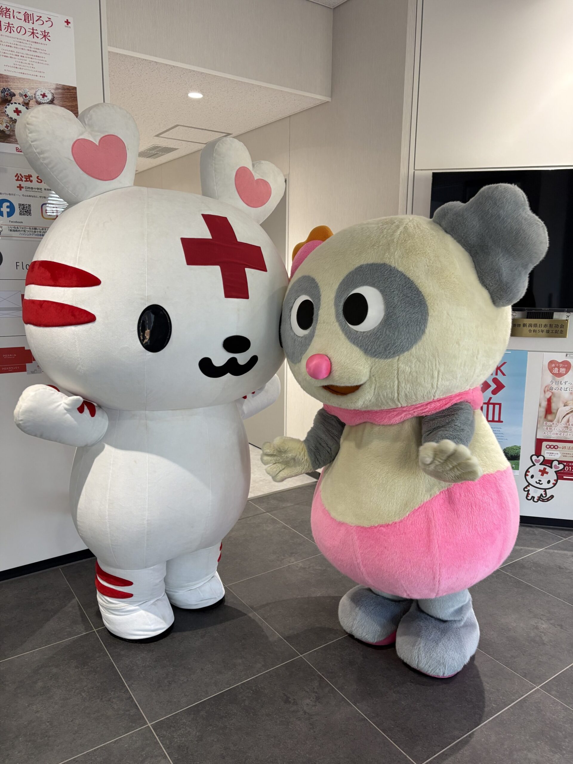パンダに憧れる6歳の男の子ハレッタ(BSNキャラクター)と、ハートランドの森の精「ハートラちゃん(日本赤十字社公式キャラクター)」は、初めましてのご挨拶!