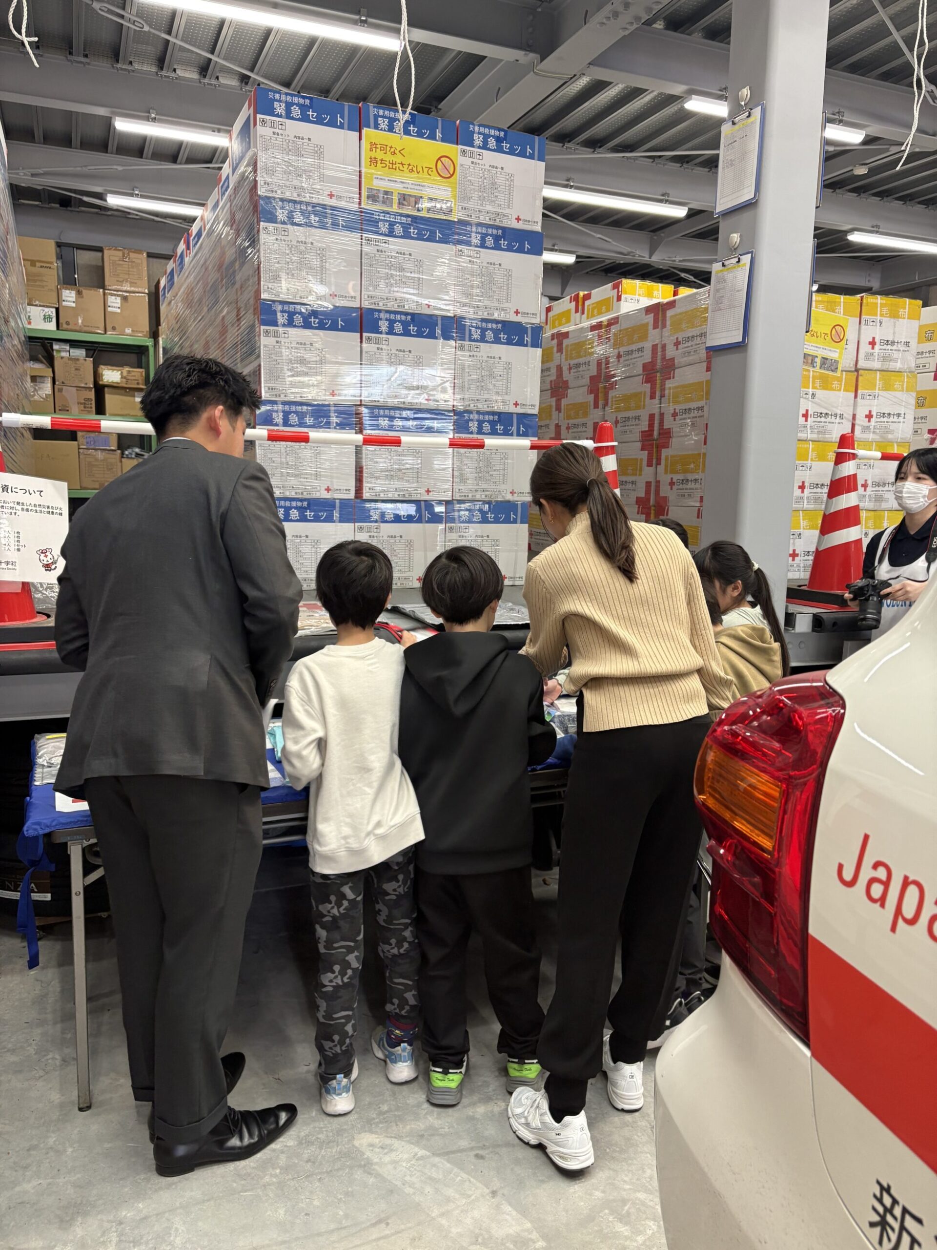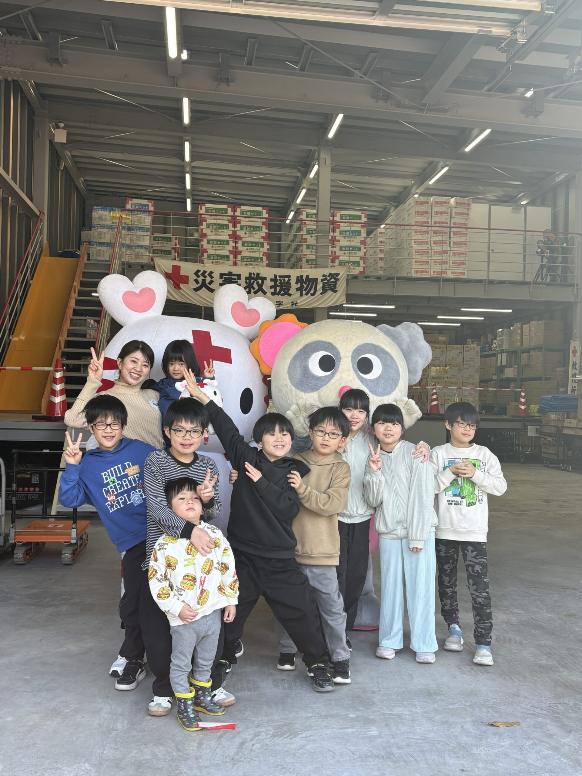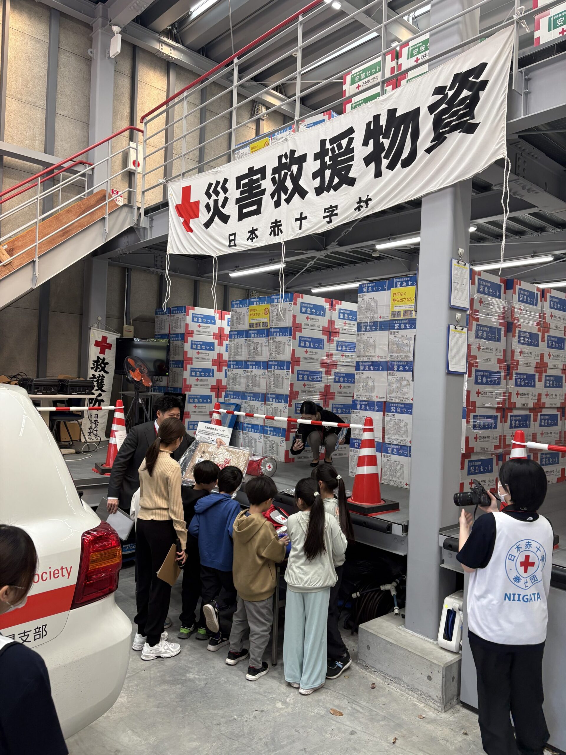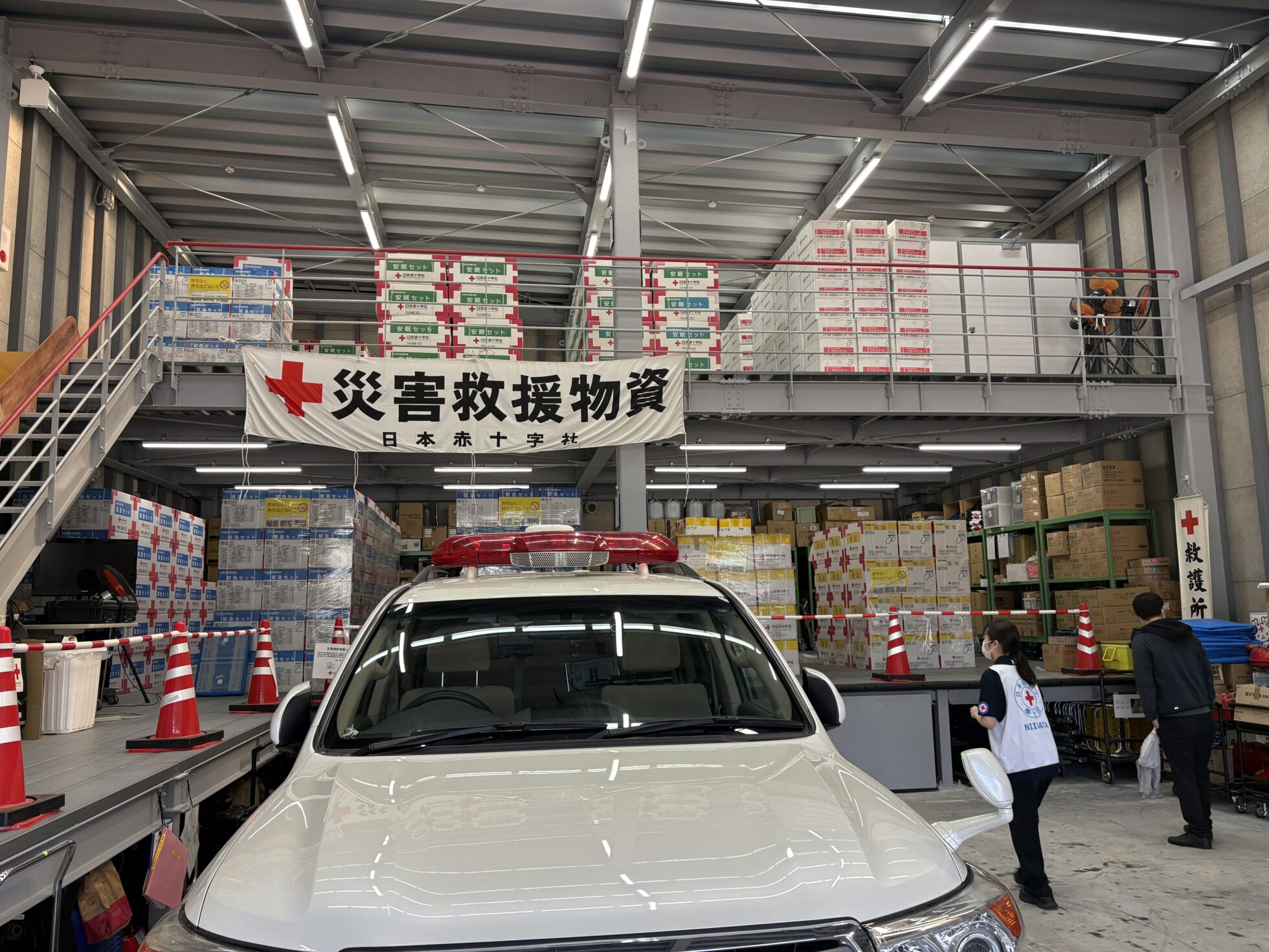 救護倉庫もありました!整理整頓された救援物資がずらりと並んでいます。