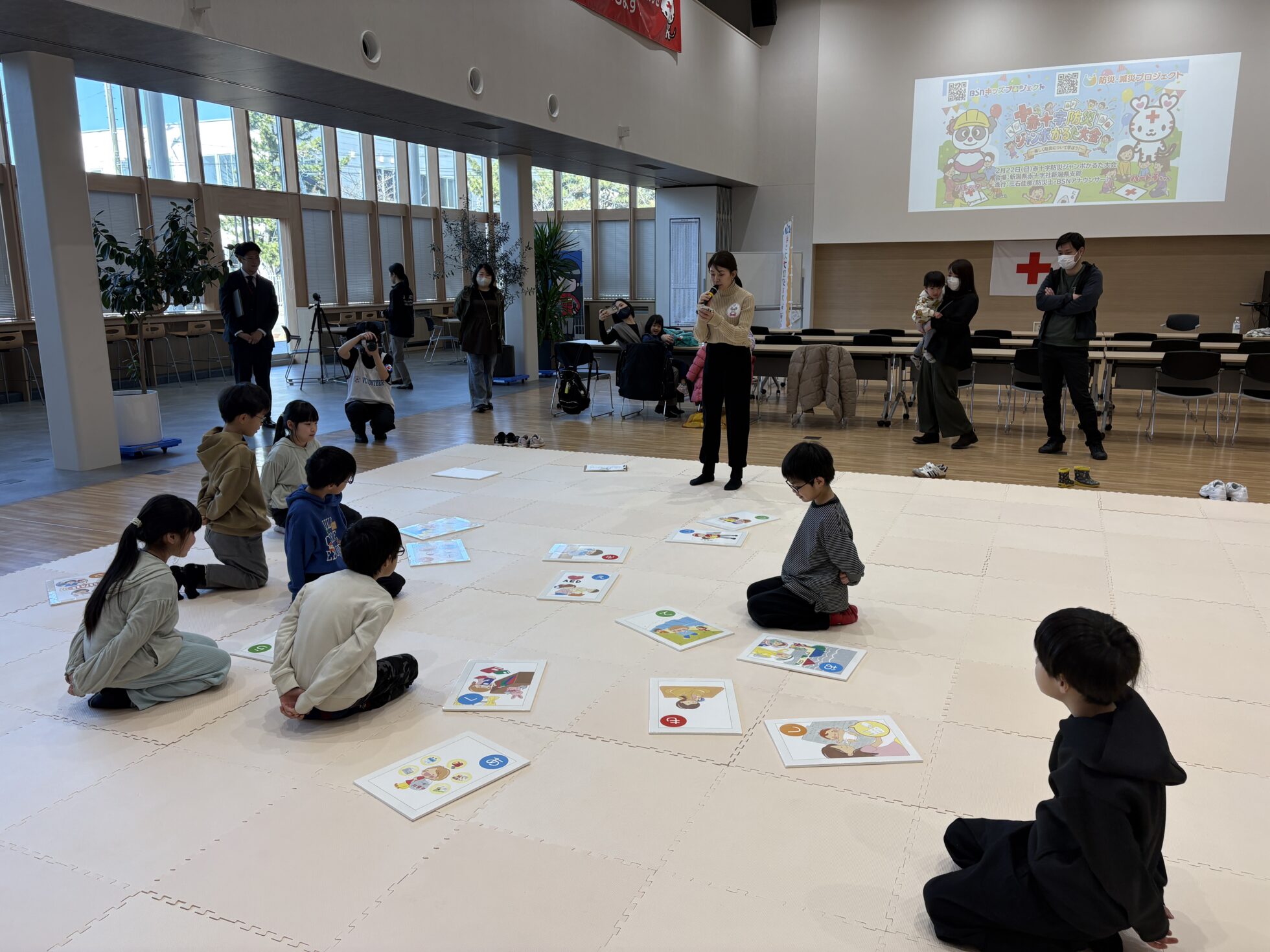 2月22日(日)、とても暖かな日になった三連休の中日に、『赤十字防災ジャンボかるた大会』を実施しました!インフルエンザで体調を崩したキッズもいて、残念ながら参加人数は少なかったのですが、集まってくれたキッズは元気いっぱいでした!